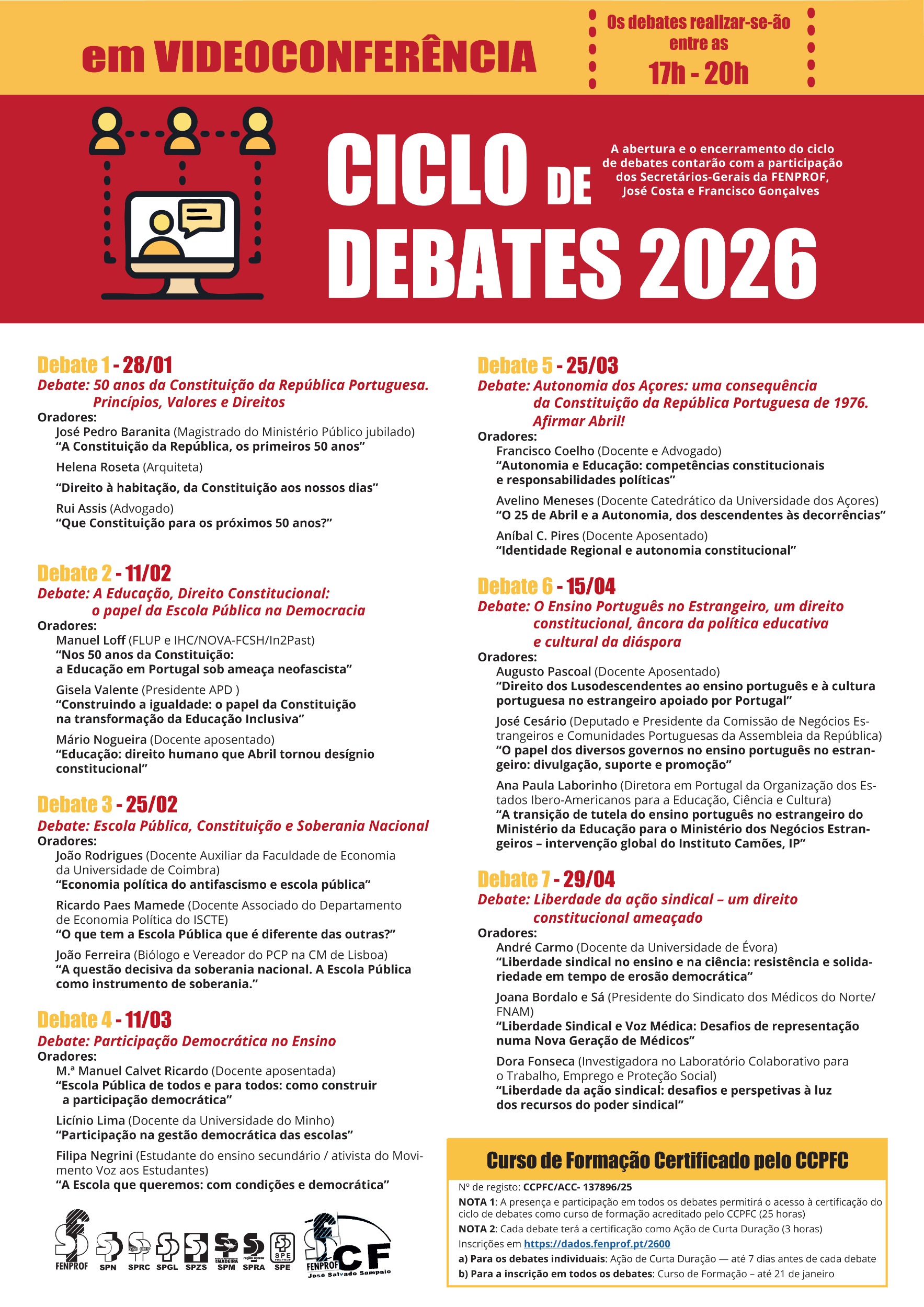 05/jan — Ciclo de Debates/2026, Fenprof (cartaz e programa)