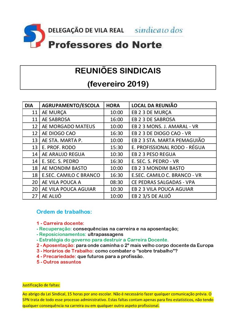 2018/2019 | Vila Real — Plenários e reuniões sindicais