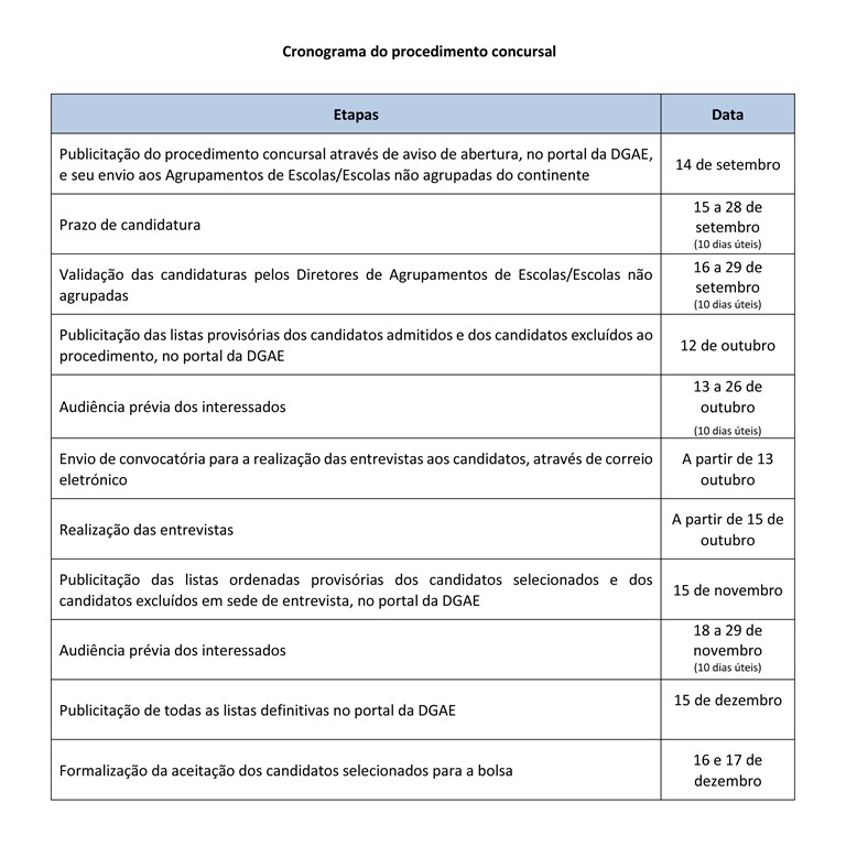 Este procedimento concursal tem em vista a constituição de uma bolsa anual de docentes para o exercício de funções docentes no Projeto Centros de Aprendizagem e Formação Escolar (Projeto CAFE), Timor-Leste, em 2022.