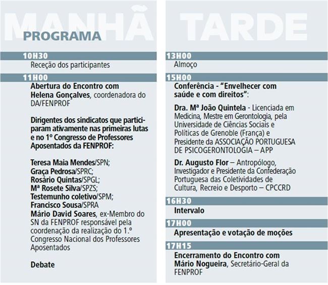 No próximo dia 26 de Novembro a Fenprof vai realizar um Encontro Nacional de Professores Aposentados, em Lisboa, na Escola Secundária de Camões com início às 11.00 horas.