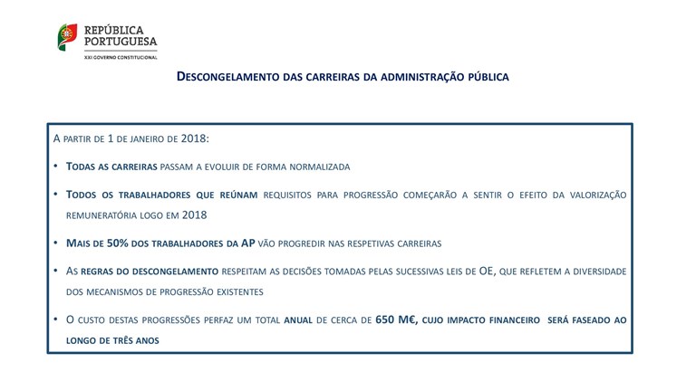Slide “Descongelamento das carreiras da Administração Pública”