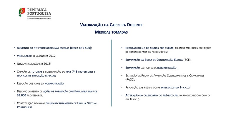 Slide “Valorização da carreira docente – Medidas tomadas”