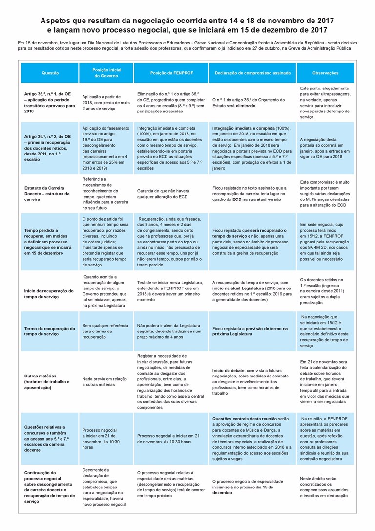 Mário Nogueira voltou a deixar claro que existe, da parte da FENPROF, total disponibilidade para negociar os tempos em que a contagem do tempo de serviço se faz. Porém, é também total a indisponibilidade para aceitar que qualquer tempo cumprido que não seja contado.