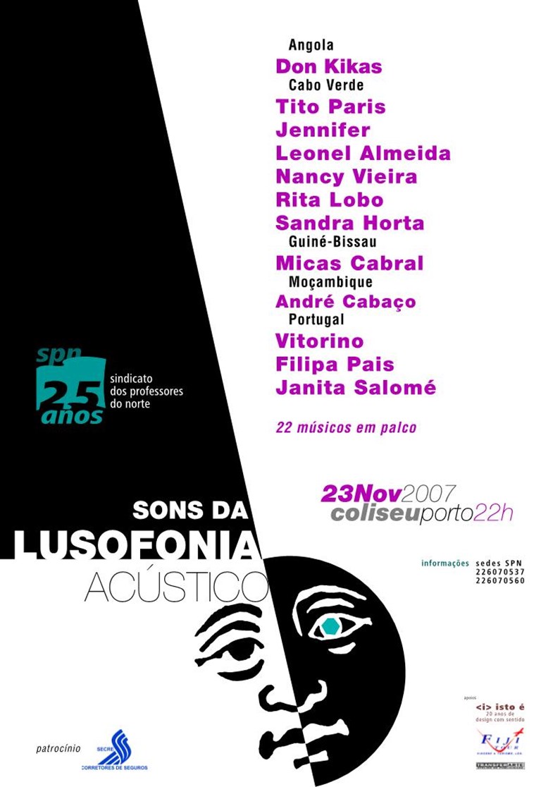 25º Aniversário Sindicato dos Professores do Norte A direcção do Sindicato dos Professores do Norte (SPN), membro da FENPROF, dá conhecimento e convida à participação, em três dos eventos que em Novembro assinalarão o 25º aniversário do nosso sindicato. Espectáculo - Sons da Lusofonia - Acústico 23 de Novembro - Coliseu do Porto - 22 horas Aquisição de bilhetes: