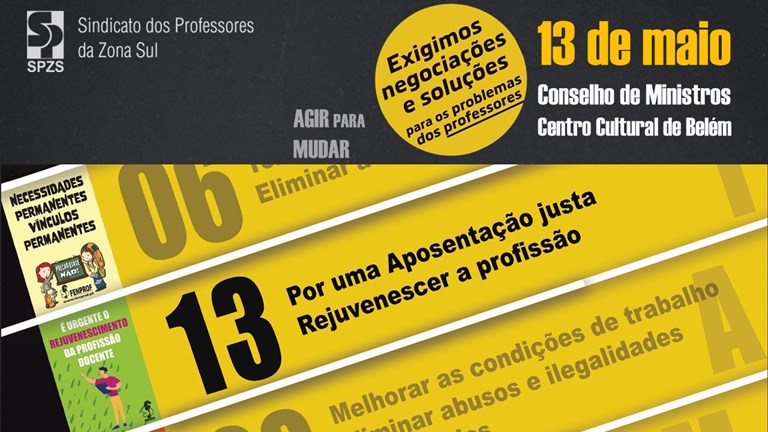 Na sequência do bloqueio negocial imposto pelo Ministério da Educação (ME), dia 13 de maio (quinta-feira) terá lugar, junto do Conselho de Ministros, mais um protesto dos educadores e professores. Desta vez o enfoque incide sobre o rejuvenescimento da profissão e a defesa de uma aposentação justa.