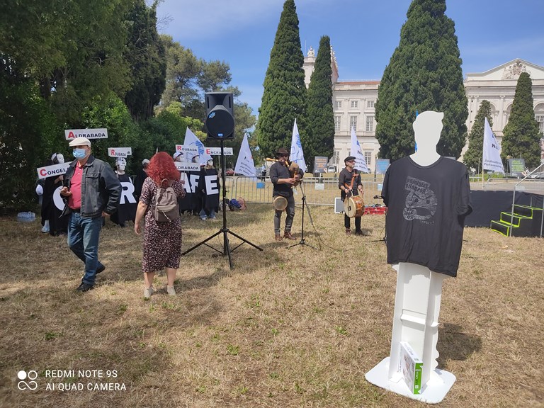 Foi desta forma, após a primeira atuação do grupo musical “Arriba o Monte”, que o speaker deu início a mais uma ação integrada no “Maio, Mês de Luta: Agir para Mudar” que, ao longo das quatro quintas feiras deste mês, aconteceram frente ao local onde se realizou o respetivo Conselho de Ministros (desta vez, foi no Palácio Nacional da Ajuda).