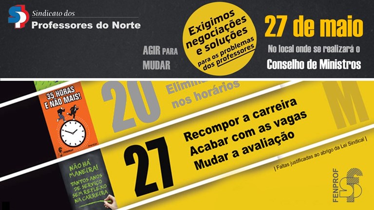 Maio, mês de luta: Agir para Mudar. Recompor a carreira docente, recuperando todo o tempo de serviço, eliminando as vagas e corrigindo o problema das ultrapassagens. Quebrar o bloqueio negocial.