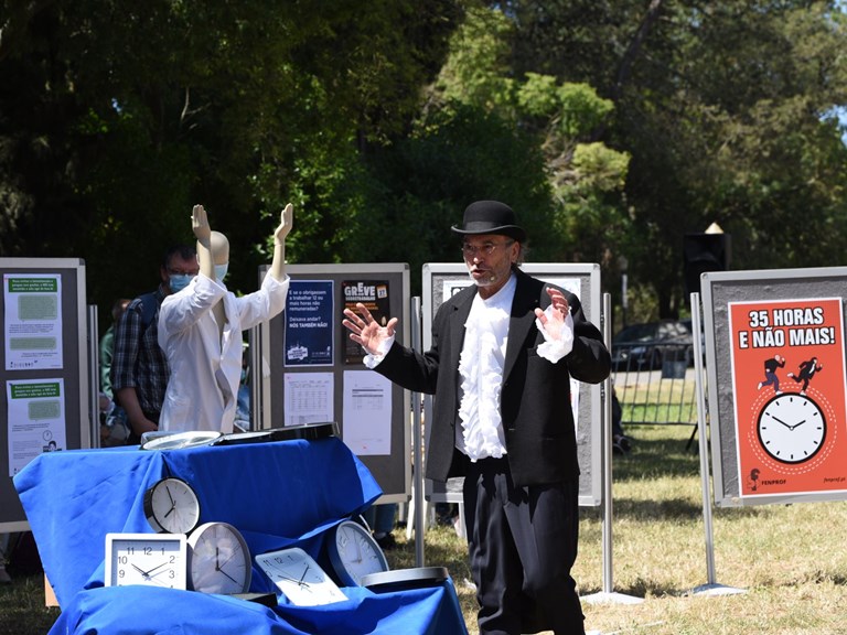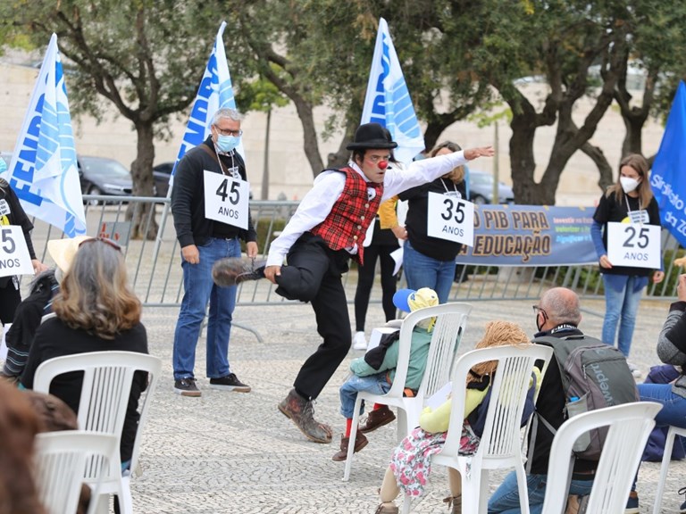 Perante uma plateia constituía por educadores, professores e alguns bonecos, ao longo da manhã desfilaram no palco vários docentes que deram conta da sua situação profissional e testemunharam que ao fim de tantos anos de serviço se encontram, uns com a carreira congelada, outros com a carreira aldrabada, e outros tantos com a carreira roubada, encravada ou injustiçada. Ora, todos estes (e outros) problemas que estão por resolver derivam de um problema maior: o bloqueio negocial. Um bloqueio imposto pelo governo e pelo ME.