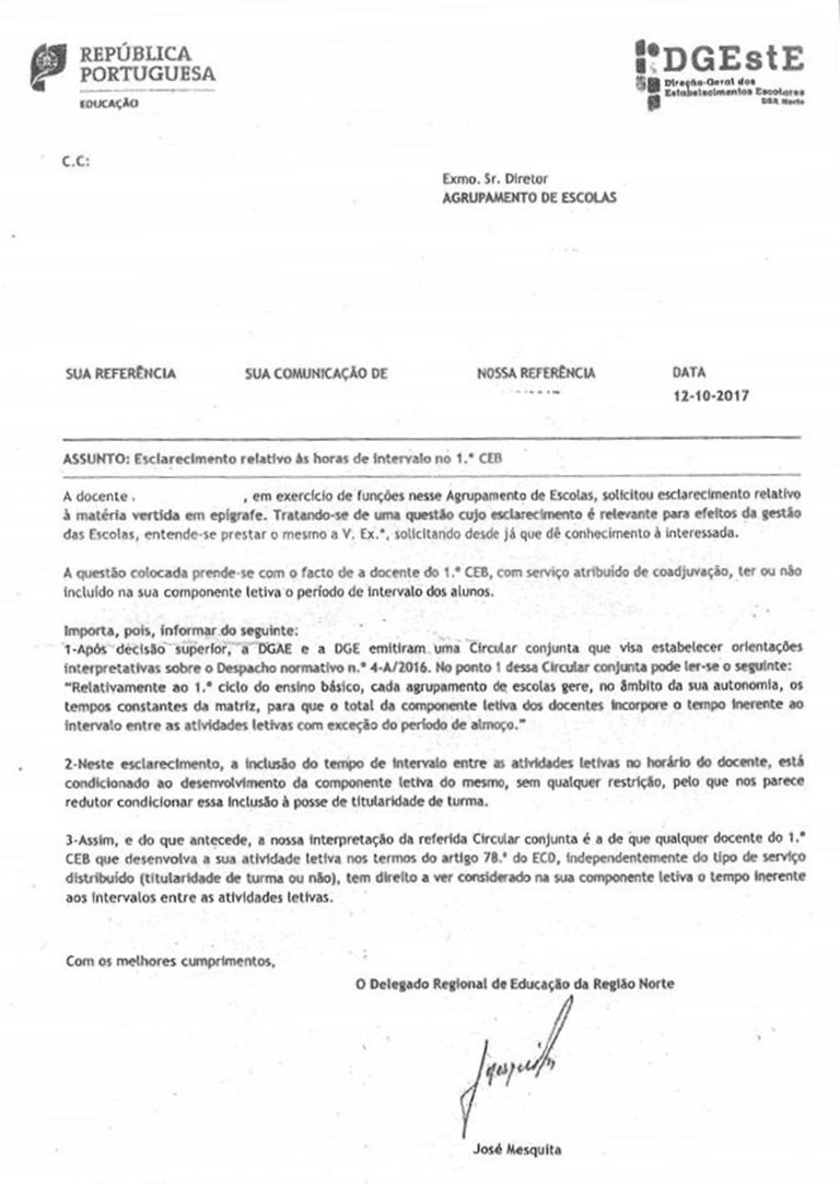Ainda os intervalos no 1.º CEB — DGEstE esclarece!