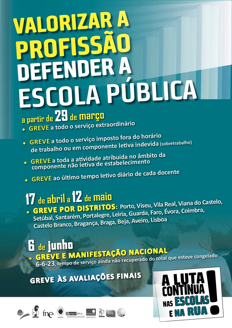 - Greve nacional com incidência distrital, acompanhadas de ações de rua;