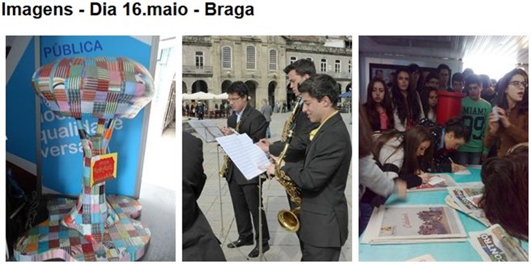 Na ação realizada na baixa portuense colaboraram o Grupo de Animação Sócio-Cultural da Escola Secundária de Gondomar, o Grupo de Teatro Pé ante Pé, da Escola Sercundária da Maia e a Oficina de Robótica da Escola Secundsria de Canidelo. Destaque ainda para as exposições com trabalhos de Jardins de Infância e EBIs do distrito do Porto e para a atuação do grupo "Gaitifarra". Foram distribuídos documentos e os postais da campanha para subscrição.