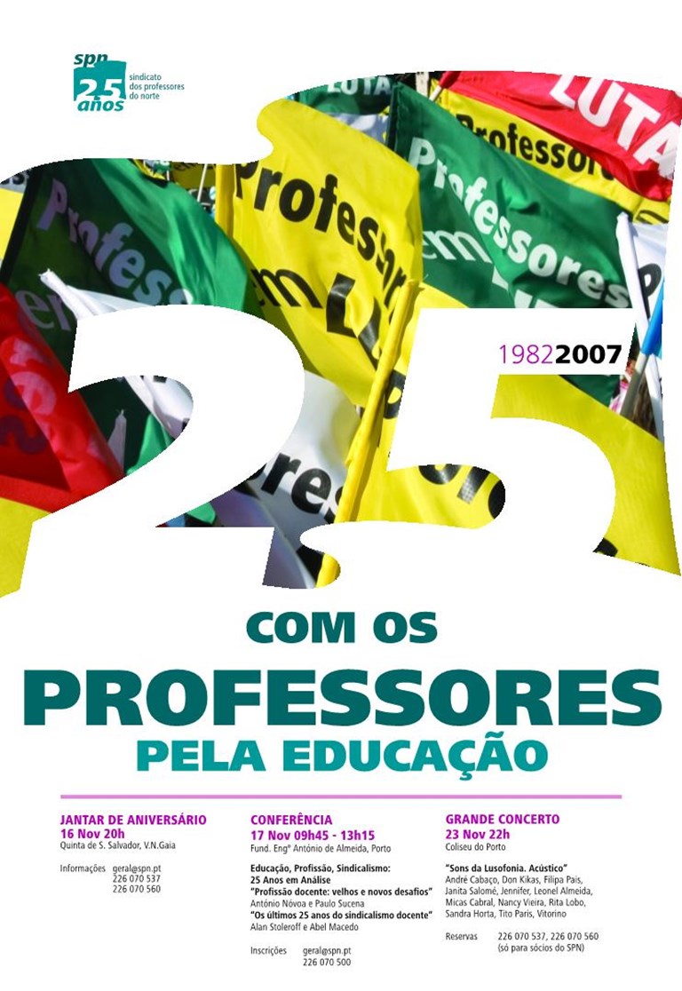 A direcção do Sindicato dos Professores do Norte (SPN), membro da FENPROF, dá conhecimento e convida à participação, em três dos eventos que em Novembro assinalarão o 25º aniversário do nosso sindicato.