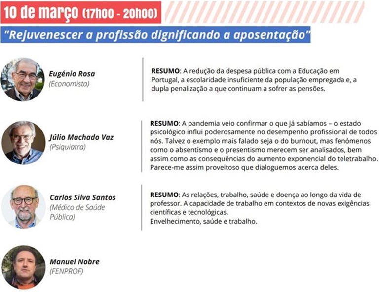 Este terceiro debate, de um ciclo que integra oito, será moderado por André Carmo (docente da Universidade de Évora e dirigente da Fenprof) e conta com Manuela Esteves (docente jubilada do Instituto de Educação da Universidade de Lisboa), Cristina Roldão (investigadora do Centro de Investigação e Estudos de Sociologia / Instituto Universitário de Lisboa) e Susana Cruz Martins (ISCTE – Instituto Universitário de Lisboa).