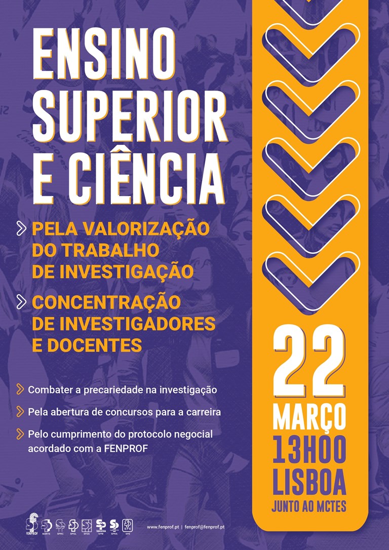 Dando conta da indignação dos docentes e investigadores relativamente ao bloqueio das negociações, a Fenprof promove uma concentração à porta do MCTES no dia 22 de março, pelas 13:00. E solicitou ser recebida pelo ministério por forma a retomar a discussão em torno do protocolo negocial acordado em novembro, mas sobre o qual o MCTES continua inexplicavelmente em silêncio.