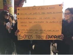 Foram algumas dezenas as/os educadoras/as de infância que se manifestaram frente ao ME exigindo a passagem imediata da tutela pedagógica das creches do MTSS para o ME e reconhecimento do tempo de serviço dos educadores de infância em creche como serviço docente, valorizando, assim a educação dos 0 aos 3 anos, como um direito das crianças e não, apenas, como uma resposta social (ver Moção aprovada e enviada para todos os grupos parlamentares e para a Comissão de Educação e Ciência).
