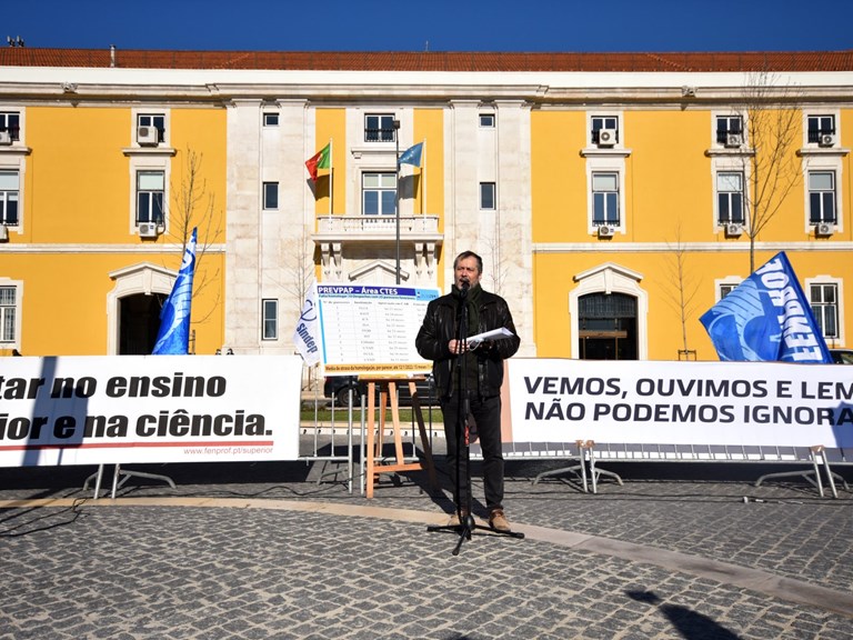 A Fenprof, em convergência com o Sindep, promove uma concentração junto ao Ministério das Finanças, na qual espera contar com a presença solidária do ministro Manuel Heitor. 31 é o número de requerentes a aguardar homologação da regularização do vínculo laboral