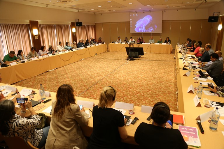 No primeiro dia (8/out), foram apresentados os resultados de um inquérito, preenchido pelas organizações presentes, sobre as respostas a alunos e professores refugiados e migrantes em cada um dos países. Foram, também, partilhadas experiências levadas a efeito por cada organização sobre a temática. As intervenções da Fenprof centraram-se nas ações de formação que tem desenvolvido sobre o tema, nomeadamente nos ciclos de debate que tem promovido, mas, também, na necessidade de os educadores e os professores assumirem um papel relevante na defesa da Paz e no combate ao discurso de ódio, bem como das escolas serem espaços educativos respeitadores dos princípios da inclusão no respeito pela diversidade, seja de que tipo for.