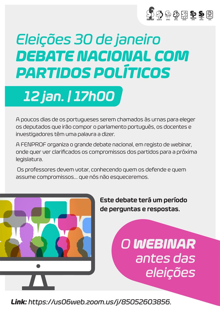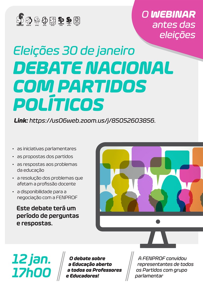 No dia 12 de janeiro, realizou-se o grande debate nacional sobre educação e profissão docente em período pré-eleitoral, no qual apenas o CDS-PP não encontrou disponibilidades para participar. Assim, PS, PSD, BE, PCP, PAN, PEV participaram com deputados responsáveis pela área da educação dos seus respetivos grupos parlamentares.
