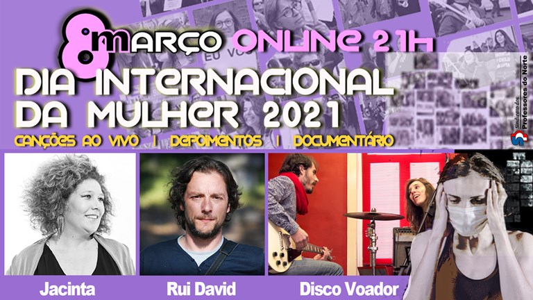 Apesar das circunstâncias atuais, ou até por isso mesmo, o Sindicato dos Professores do Norte quer assinalar, mais uma vez, o Dia Internacional da Mulher. Não sendo aconselhável a realização de uma iniciativa presencial, estamos a preparar uma sessão comemorativa online, no dia 8 de março, às 21 horas, com momento musical, exibição de documentário e apresentação de testemunhos.