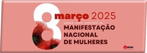 Estamos empenhadas e apelamos à ampla participação de mulheres no dia 8 de Março de 2025 - Dia Internacional da Mulher - na Manifestação Nacional de Mulheres promovida pelo MDM. Esta Manifestação será um momento alto de convergência de muitas mulheres, em diversos distritos, onde estarão presentes e visíveis diversas expressões da participação e movimentação de mulheres num compromisso alargado e comum de acção reivindicativa por uma sociedade onde a igualdade e a participação sejam vividas plenamente, os direitos respeitados, a justiça social e a paz uma realidade.