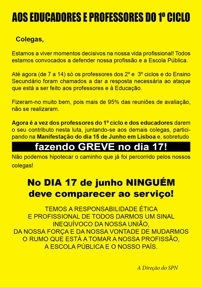 Educadores e Professores do 1ºciclo - a GREVE do dia 17