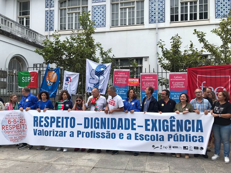 (com a presença do secretário-geral adjunto da Fenprof, Francisco Gonçalves; do secretário-geral da FNE, Pedro Barreiros; da vice secretária-geral do Sindep, Patrícia Ribeiro e da presidente do SIPE, Júlia Azevedo)