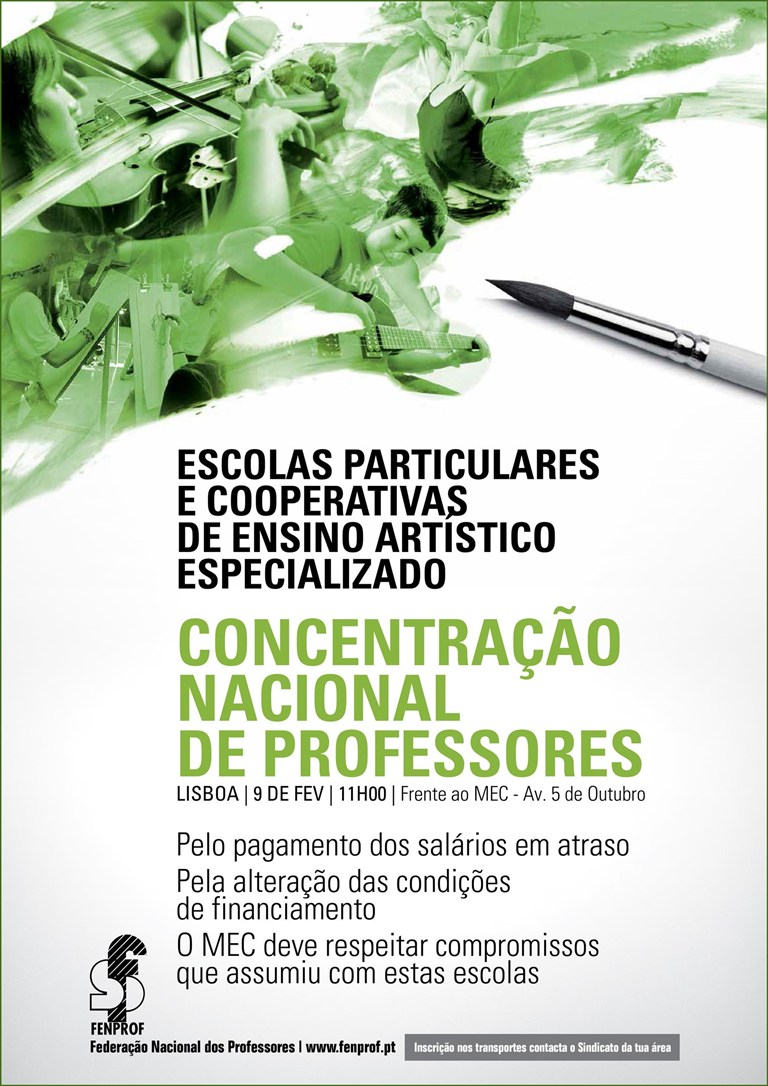 - Prevenindo a eventual necessidade de justificar faltas ao serviço por parte dos docentes que não tenham outra forma de o fazer, a FENPROF apresentou pré-aviso de greve para o dia 9 de fevereiro, entre as zero e as vinte quatro horas, abrangendo todos os docentes que exerçam funções nas escolas particulares e cooperativas do ensino artístico especializado.
