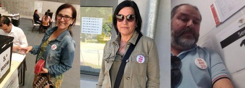 Em primeiro lugar, a FENPROF saúda todos os professores que exerceram o seu direito de voto no passado dia 26 de maio e, de forma particular, os que decidiram levar, de forma explícita, a luta até ao voto, designadamente usando o crachá 9A 4M 2D ou envergando T-shirt com essa e ou outra inscrição de índole reivindicativa. (Ver imagens)