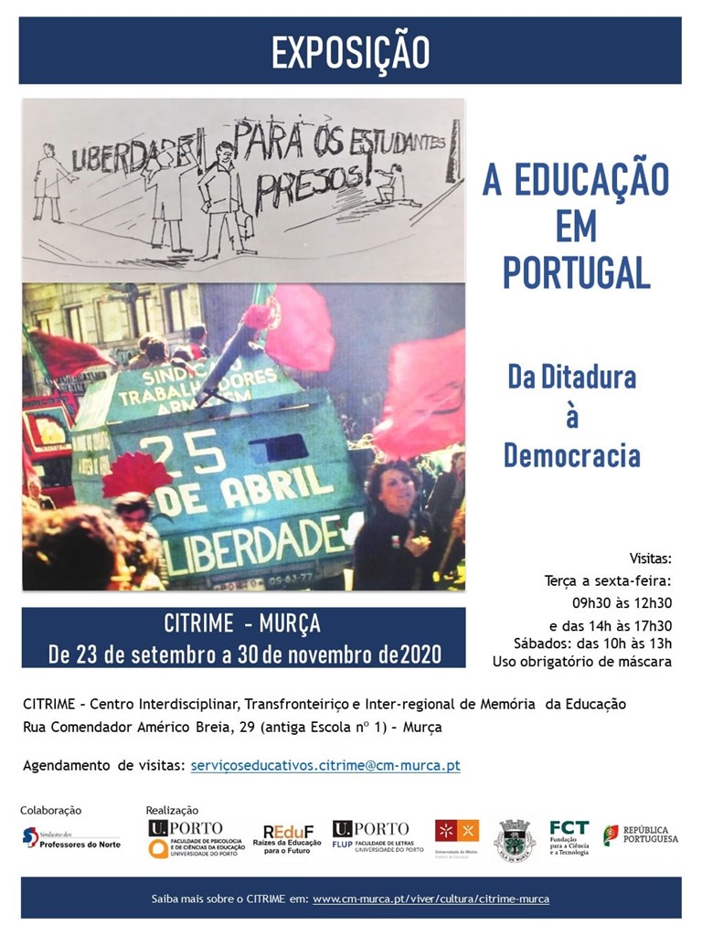 O Projeto Raízes da Educação para o Futuro - REduF, da Faculdade de Psicologia e Ciências da Educação da Universidade do Porto, irá promover a Exposição "A Educação em Portugal: Da Ditadura à Democracia", no CITRIME (Centro Interdisciplinar, Transfronteiriço e Inter-regional de Memória da Educação), em Murça.