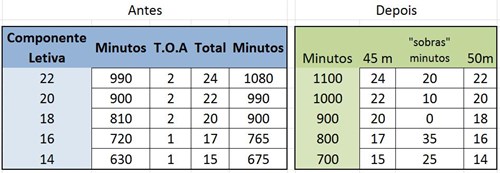 - Sim, como se pode comprovar pelo quadro comparativo entre a organização anterior dos horários e a atual.