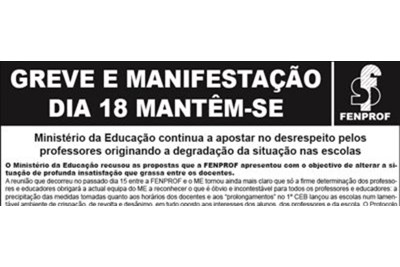 A resposta só pode ser a de uma greve massiva e uma grande manifestação dia 18, que a FENPROF decidiu manter.