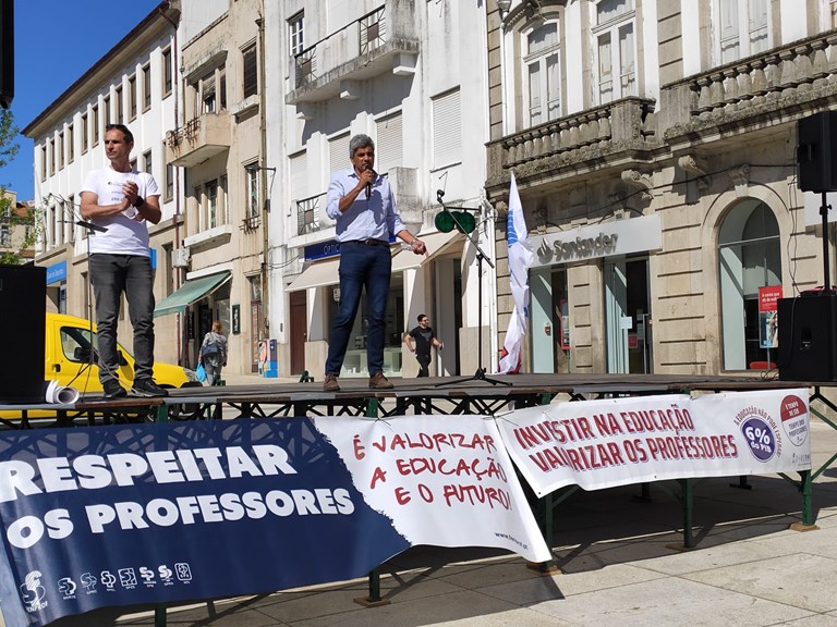 Francisco Gonçalves (membro da coordenação do SPN e secretário-geral adjunto da Fenprof) acompanhou os docentes que participaram nas concentrações em Bragança — ES Emídio Garcia (12h30) e Praça da Sé (15h) —, onde apelou à capacidade de resistência, força e determinação dos docentes numa luta que se adivinha longa.