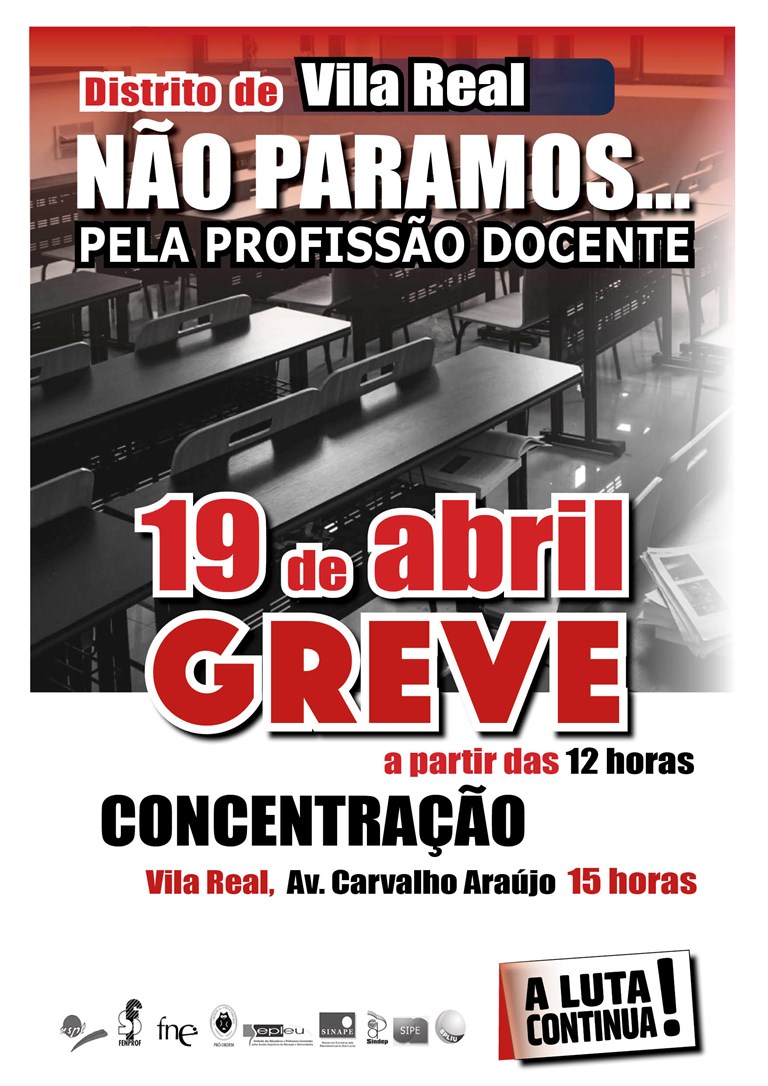 Dia 19 de abril, a greve passou pelo distrito de Vila Real, onde a adesão manteve os números dos primeiros dois dias. Na Avenida Carvalho Araújo, centenas de educadores e professores em greve aprovaram por unanimidade a Moção "Professores em luta pelos seus direitos, pela valorização da profissão e pelo futuro da Escola Pública e de uma Educação de qualidade".
