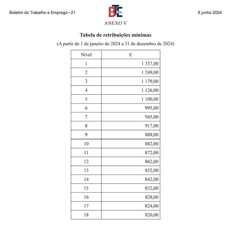 Vencimentos de 2022 — BTE n.º 24/2023, de 29 de junho de 2023