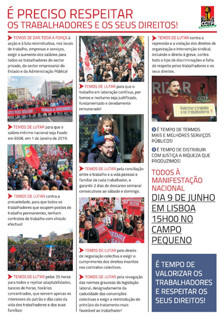 O mundo do trabalho continua marcado por graves problemas e profundas injustiças, prosseguindo-se uma política de baixos salários, de enorme precariedade laboral, de horários desregulados, desrespeito pelo direito de contratação coletiva, em que a caducidade assume papel decisivo, repressão, violação dos direitos e discriminações de todo o tipo.