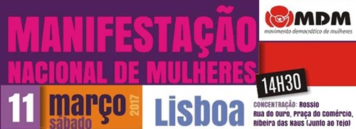 No âmbito das comemorações do Dia Internacional da Mulher, que se assinala no próximo dia 8 de Março, o Movimento Democrático das Mulheres promove, no próximo Sábado, dia 11 de Março, em Lisboa, uma Manifestação Nacional de Mulheres, sob o lema “A voz das mulheres pela Igualdade – Direitos | Desenvolvimento | Paz”.