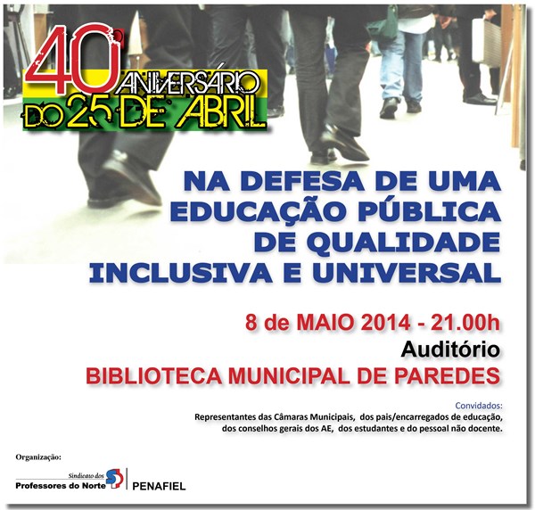 No âmbito dos 40 anos do 25 de Abril, a Direção do Sindicato dos Professores do Norte (SPN) decidiu promover um conjunto de reuniões com representantes da comunidade educativa da sua área de influência, visando analisar a situação educativa e debater as implicações das transformações profundas que se têm vindo a operar no funcionamento do sistema educativo e das escolas.