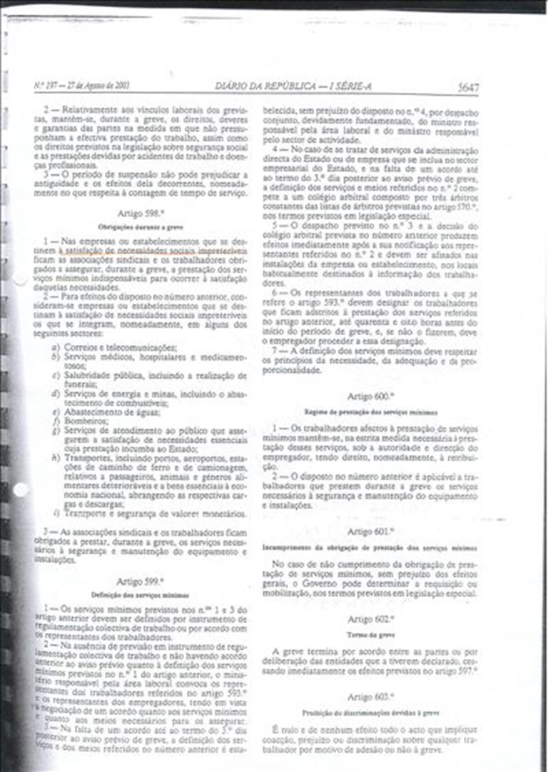 O número 2 do art.º 598º do Código de Trabalho especifica os sectores onde podem ser necessários serviços mínimos, a saber: