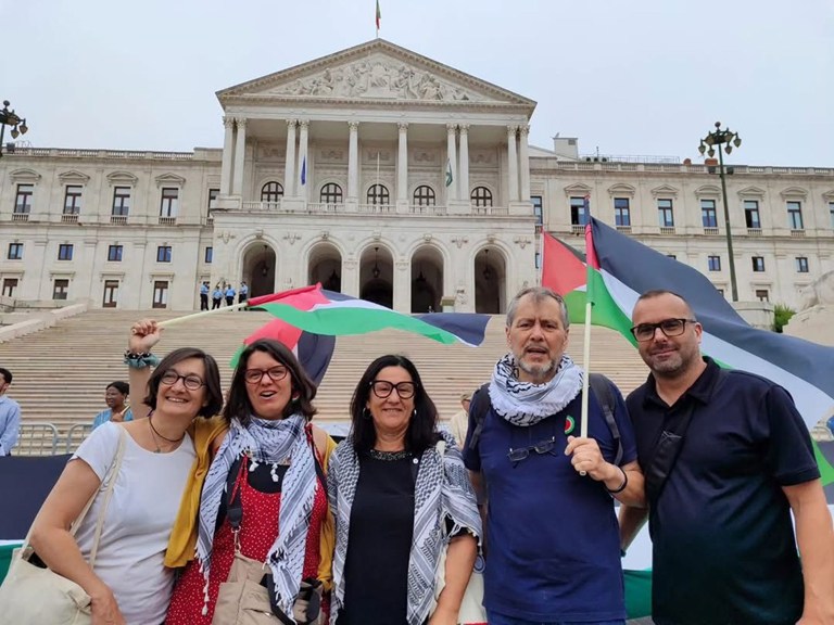 Uma delegação da Fenprof participou no Ato Público, promovido por CPPC, CGTP-IN, Projeto Ruído e MPPM (11/jul), por ocasião do debate e votação pelo reconhecimento do Estado da Palestina, na Assembleia da República.