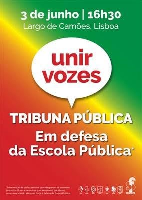 Ainda no dia 3 de Junho, a partir das 16 horas, realizar-se-á uma Tribuna Pública em Lisboa, no Largo de Camões na qual participarão diversos subscritores da Petição, dando o seu testemunho em defesa da Escola Pública de qualidade como garante de igualdade de oportunidades.