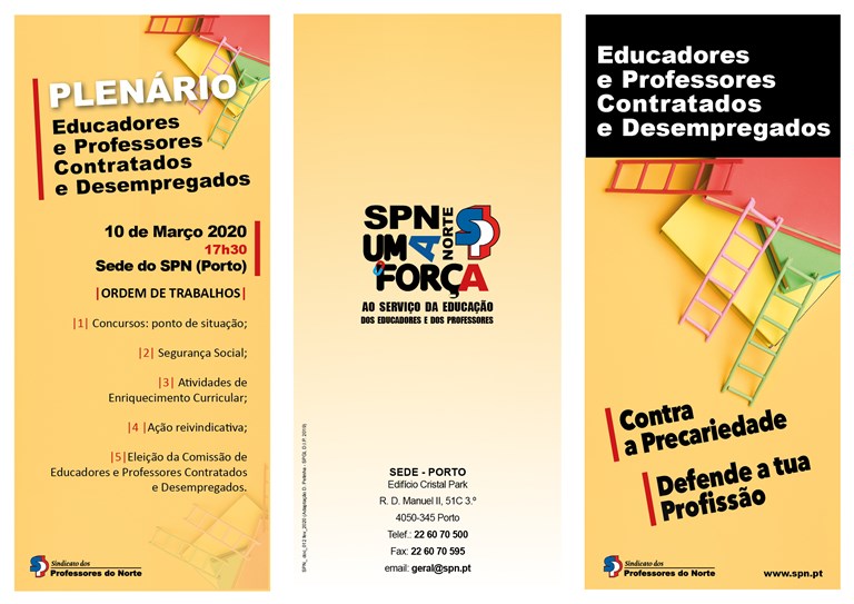 Tendo em conta as recomendações de prevenção da Direção-Geral de Saúde (DGS), relativas ao surto e desenvolvimento do novo Coronavírus (COVID-19), a Direção do Sindicato dos Professores do Norte decidiu, entre outras medidas, cancelar o plenário de professores contratados e desempregados, agendado para amanhã, dia 10 de março, pelas 17:30 horas, na sede do SPN.