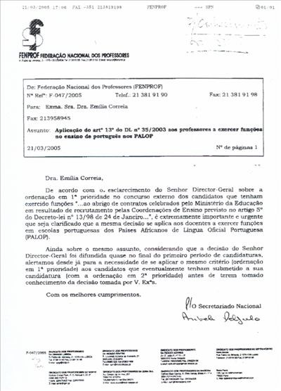 Em fax ( ver anexo) enviado à FENPROF o Director Geral dos Recursos Humanos esclarece que os docentes que num dos 2 últimos anos estiveram a leccionar no estrangeiro poderão concorrer na 1ª prioridade.