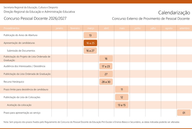 Calendarização global dos Concursos Interno e Externo de Provimento