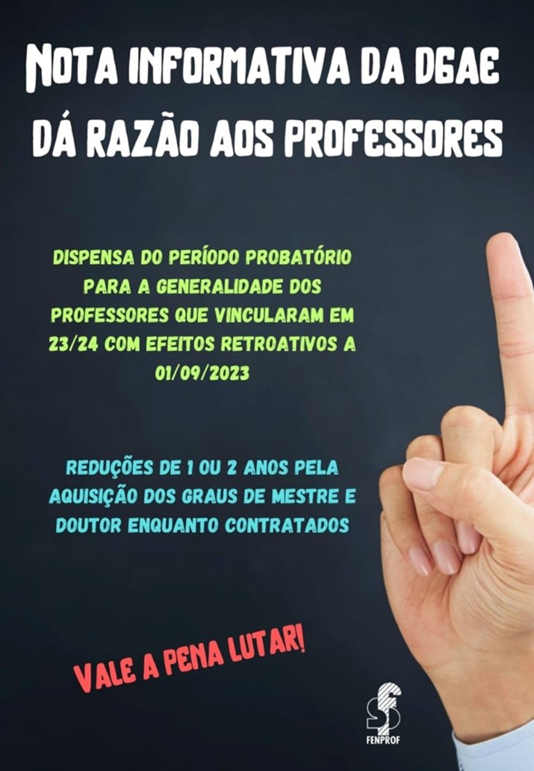 Em nota informativa da DGAE (12/jan), o Ministério da Educação assume, relativamente às alterações do artigo 54.º (aquisição de mestrados e doutoramentos) do ECD, as posições que a Fenprof defendeu em negociação, garantindo a aplicação das reduções de 1 ou 2 anos, para efeitos de progressão, pela aquisição dos graus, respetivamente, de Mestre e Doutor, aos docentes que os concluíram enquanto contratados.