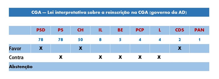 Na Assembleia da República (AR), a lei interpretativa do governo passou com a aprovação de PSD, CDS e Chega. Assim, ficam impedidos de se inscrever na Caixa Geral de Aposentações (CGA) milhares de educadores e professores. A Fenprof apela ao Presidente da República, à Assembleia da República e à Provedoria de Justiça que requeiram a fiscalização preventiva da constitucionalidade.