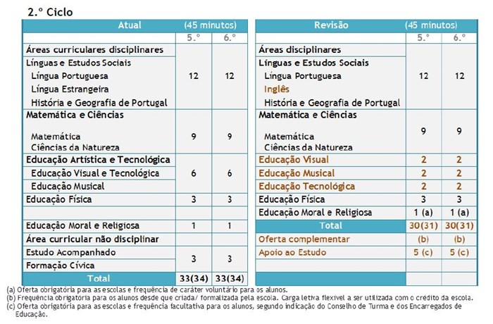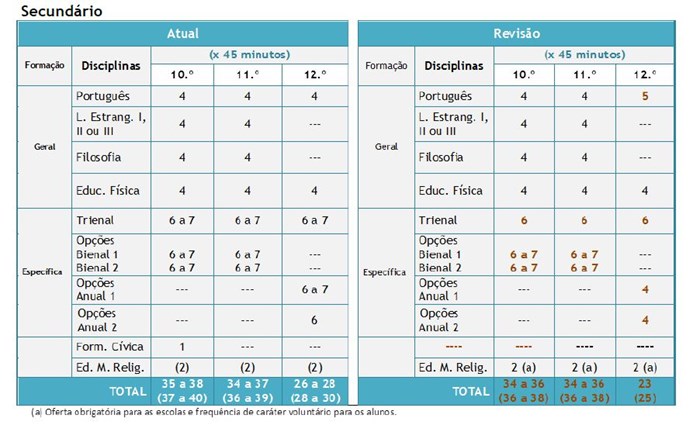 Reorganização curricular — Proposta do MEC de 26 de Março (2012)