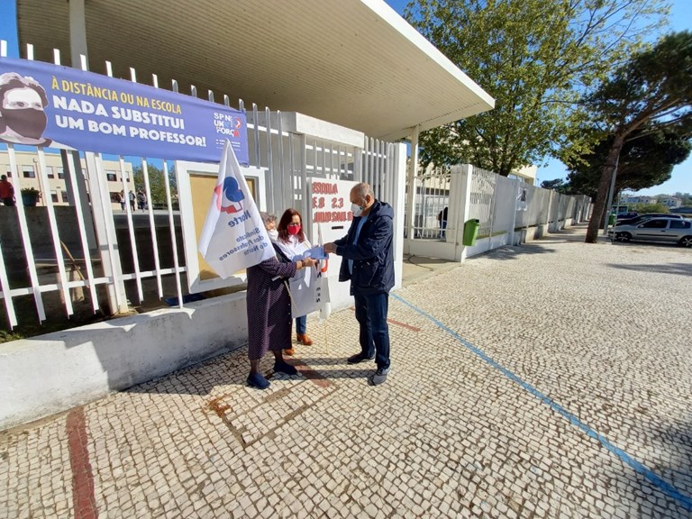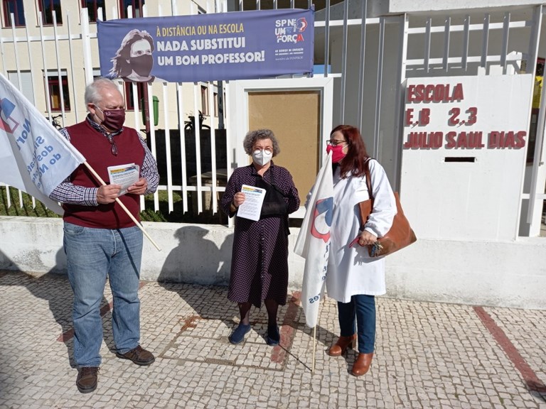 A Delegação do SPN/Póvoa de Varzim assinalou, junto da EB23 Júlio Saúl Dias o regresso ao ensino presencial dos 2.º e 3.º CEB.