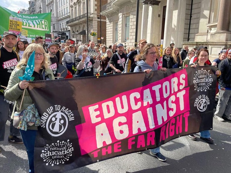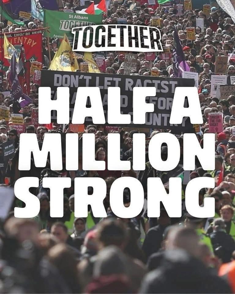 Esta marcha, respondendo ao protesto de Tommy Robinson, “cheio de raiva e ódio”, teve como objetivo central afirmar a unidade contra o racismo, a xenofobia e a divisão social, promovendo uma mensagem de “esperança em vez de medo” e de mobilização cívica contra o avanço de forças de extrema direita no Reino Unido. Daniel Kebede, secretário geral do National Education Union (NEU), o maior sindicato da educação do Reino Unido (e da Europa), saudou “a maior mobilização antirracista que a Grã-Bretanha alguma vez viu”, mostrando-se “especialmente orgulhoso por ver tantos membros do NEU presentes e em força — visíveis, unidos e defendendo os valores em que acreditamos”. Ideias reafirmadas por Edward Harlow, presidente do NEU, no discurso de abertura da Conferência Anual, #NEU2026, que hoje teve início em Brighton, com mais de 1300 delegados.