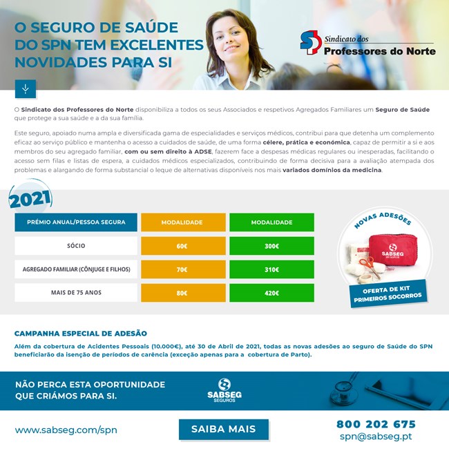 Neste sentido, serve a presente para informar sobre as atualizações dos prémios e sobre as principais vantagens e alterações introduzidas nas Condições e Planos de Garantias do Seguro de Saúde SPN para a anuidade 2021 e que entram em vigor já a 1 de janeiro de 2021, a saber: